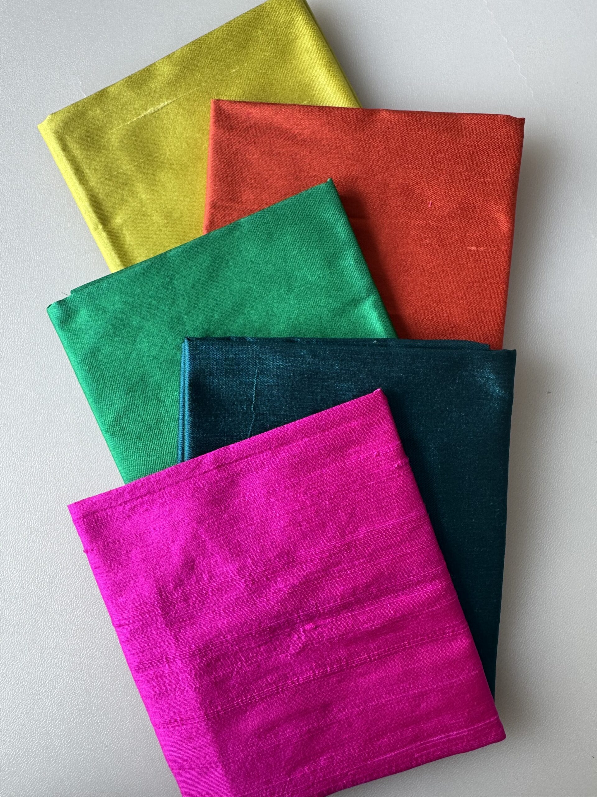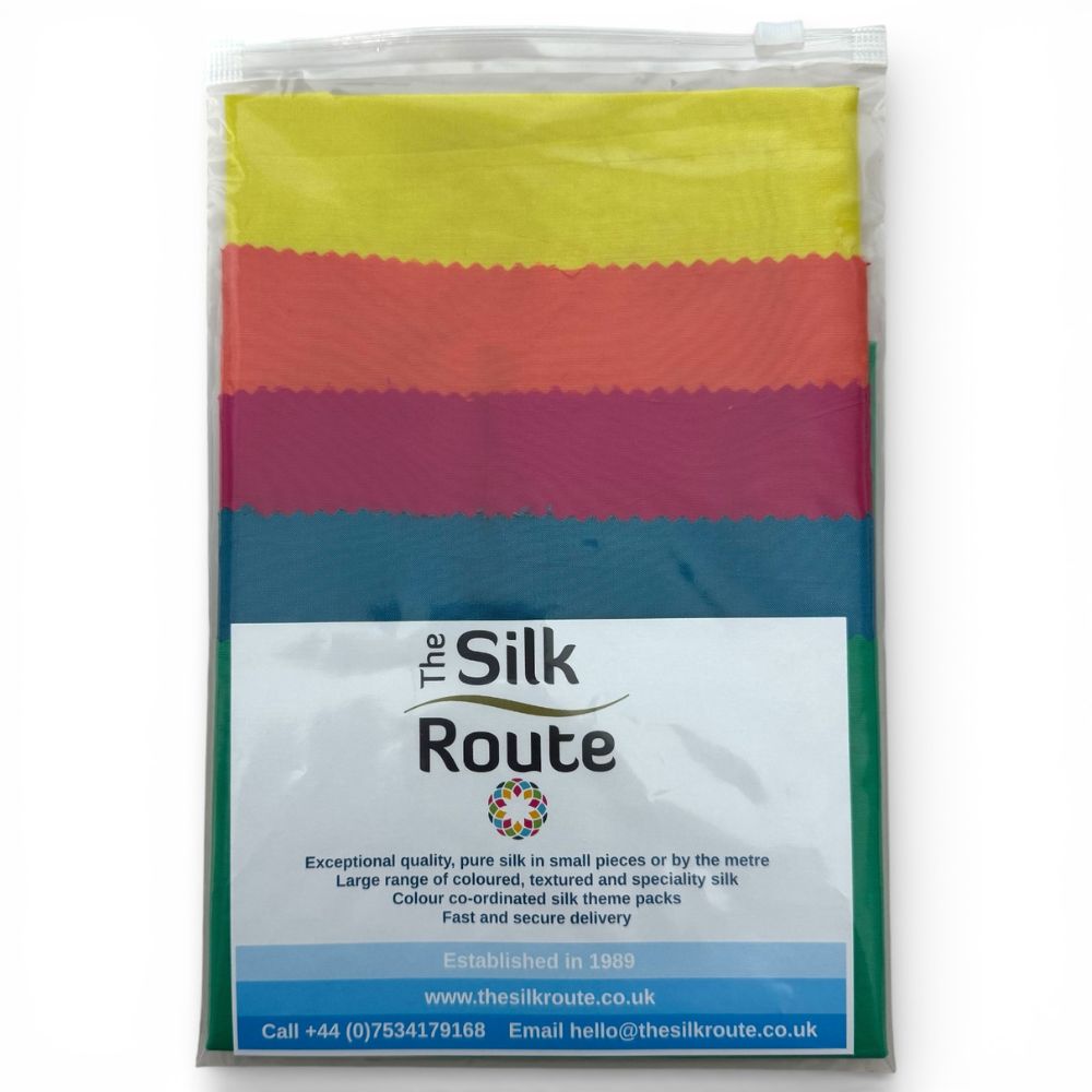 Flame Silk Theme Pack contains 5 pieces of Indian Silk Dupion in warm reds, oranges and golds. The contents of the pack may vary from the picture illustrated.