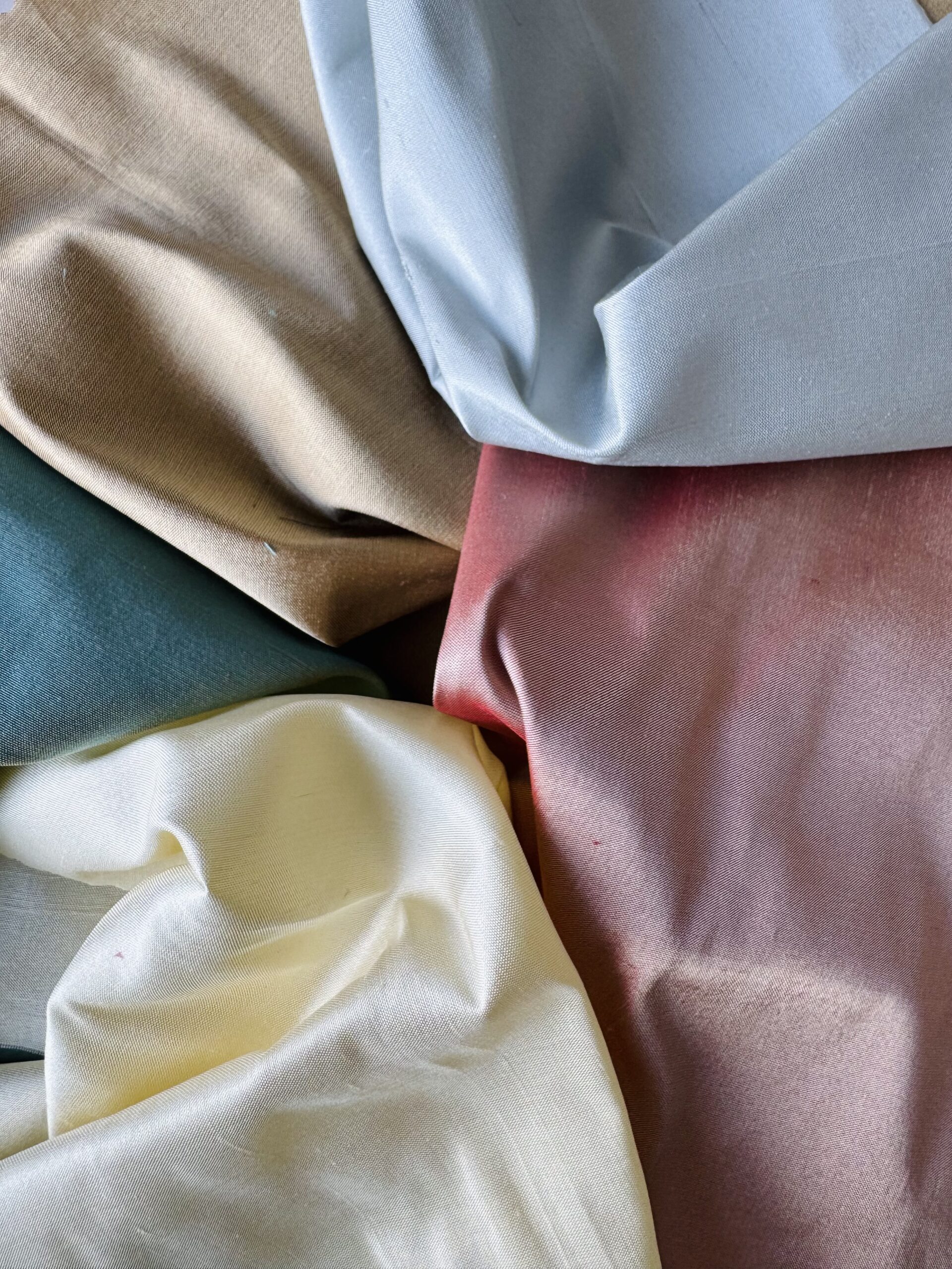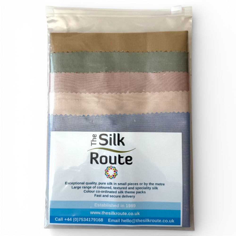 Shoreline Silk Theme Pack contains 5 pieces of Indian Silk Dupion in shades of the seashore. The contents of the pack may vary from the picture illustrated.